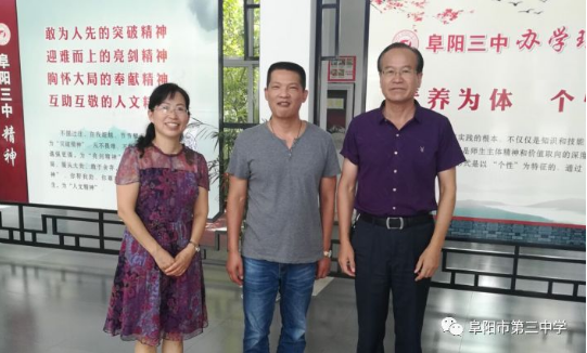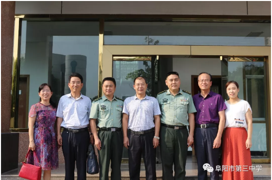 阜阳军分区政委李光,司令员白中华,副司令员龚辉和颍州区人民武装部政委丁峰,副部长江波等领导对阜阳三中的到来表示感谢,感谢阜阳三中对现役军人子女就学给予的帮助和关爱,为他们解除了后顾之忧;再次重申了阜阳军分区、人武部和阜阳三中的深厚情谊,今后会一如既往地支持阜阳三中的发展。